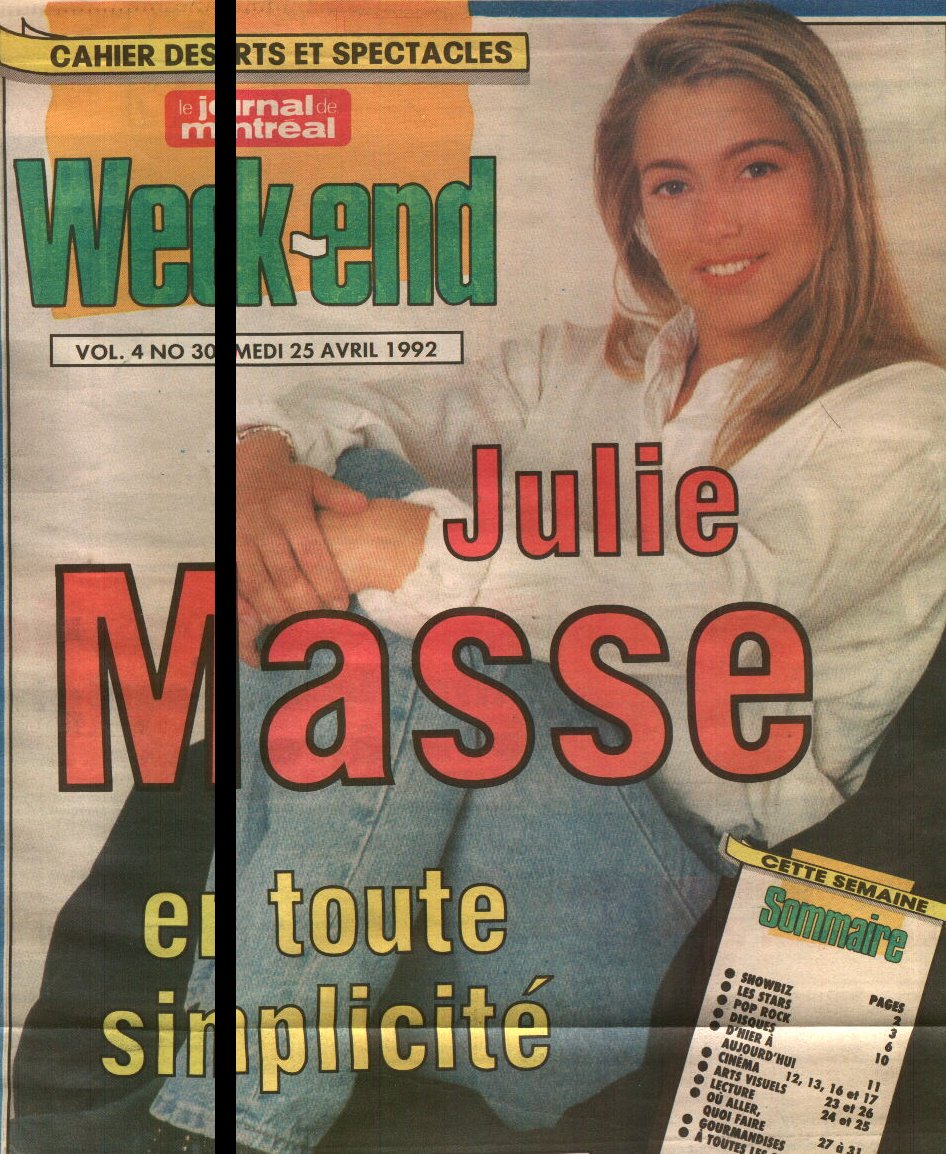 Julie Masse, qui aura 22 ans, le 3 juin prochain, a lancé son premier album, le 21 aoûts 1990.